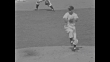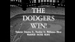 Title card: "The Dodgers Win!" superimposed over crowd in stands / shot of stands and ball field / Yankee player Tommy Byrne winds up and pitches / Dodger Roy Campanella hits ball and runs as pan follows ball and Yankee Elston Howard catches and throws ball / Campanella runs to base / crowd shot / Byrne pitches / Dodger Gil Hodges hits ball and runs to first base, then pan as Campanella runs past third / shot of crowd in stands / Yankees player Yogi Berra hits ball and begins to run, then pan as Dodgers Duke Snider and Jim Gilliam attempt to catch ball, Snider picks up and throws ball to baseman who catches it, then pan to Berra at second base / shot of spectators in stands / another crowd shot / Casey Stengel in dugout / Dodger Johnny Podres raises glove / Berra hits ball and runs, then pan as ball flies toward stands, where Dodger Sandy Amoros catches it, then throws to Dodger Pee Wee Reese, who tags Yankee Gil McDonald / crowd in stands / crowd in stands with "Kill The Bums" sign visible / "Let's Go Yanks" sign / Podres pitches / Howard hits ball and runs / Howard hits ball and runs, then pan as Reese catches and throws ball, then continued pan as Hodges catches ball / team runs toward Podres and embraces him / crowd pours onto field / Snider greets journalists and photographers in locker room / shot of press in locker room / Campanella walks through press / Don Newcombe doffs hat / Podres smiles, two teammates pick up and carry him / crowd on field
