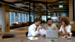 Three business people meeting and discussing a document in the office - 4K Stockvideo