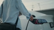 Tomorrow's Transportation Today: Urban Asian Male Driving Electric Vehicle, Embracing Clean Energy Mobility. - 4K Stockvideo