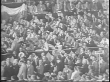 Train on tracks / President Franklin Delano Roosevelt delivers his acceptance speech to the Democratic National Convention / he urges against voting for inexperience / the President's dog, Fella, sits next to a box radio / radio operators give FDR the signal, he begins his speech / FDR speaks to the camera / large crowds of people listen at the convention / individual shots in crowd.