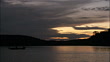 Two people sit in a boat on Yaxha Lake at dusk. Available in HD (Core Number: LAAY147H)