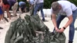 Video of sandbag preparation (Sound with Kristen Crane, Planning Director, Town of James Island, SC), nat sound of ice machines for power outage prep, not mandatory but brisk evacuation of Folly Beach, SC and sales at gas station. Locators: James Island, SC