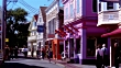 Wide shot people walking in shopping district/ Provincetown, Massachusetts - HD Stockvideo