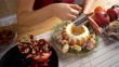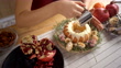 Woman pouring melted chocolate over cake - 4K Stockvideo
