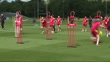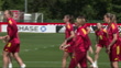 Various shots of Wales 'The Dragons' womens football team training on outdoor pitch ahead of match against Italy