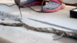 Werknemer boor een cement vloer voor het renoveren van een huis - 4K Stockvideo