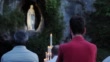 Worshippers pray at Grotto of Massabielle, Sanctuary of Lourdes, France - HD Stockvideo