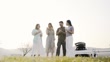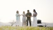 Young friends having fun on the roadside - 4K Stockvideo