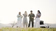 Young friends having fun on the roadside